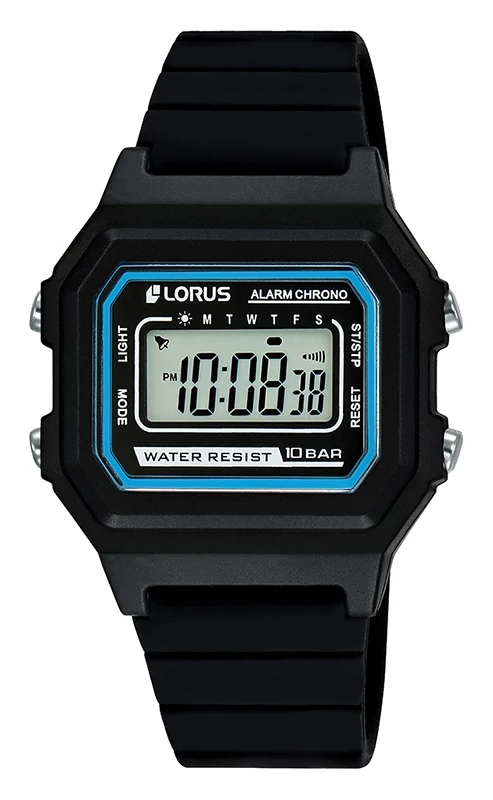 Lorus gyerek óra R2317NX9, aminek a cikkszáma R2317NX9, most 10.500 Ft-ért elérhető webshopunkban. Az óratok szögletes, anyaga műanyag, színe fekete. A számlapja . Szíjának anyaga szilikon, színe fekete, elemmel működő kvarc szerkezettel rendelkezik. 100 méterig vízálló, így fürdésre, úszásra alkalmas. Szerintünk egy sportos stílusú karóra. A termékre 24 hónap garanciát adunk.